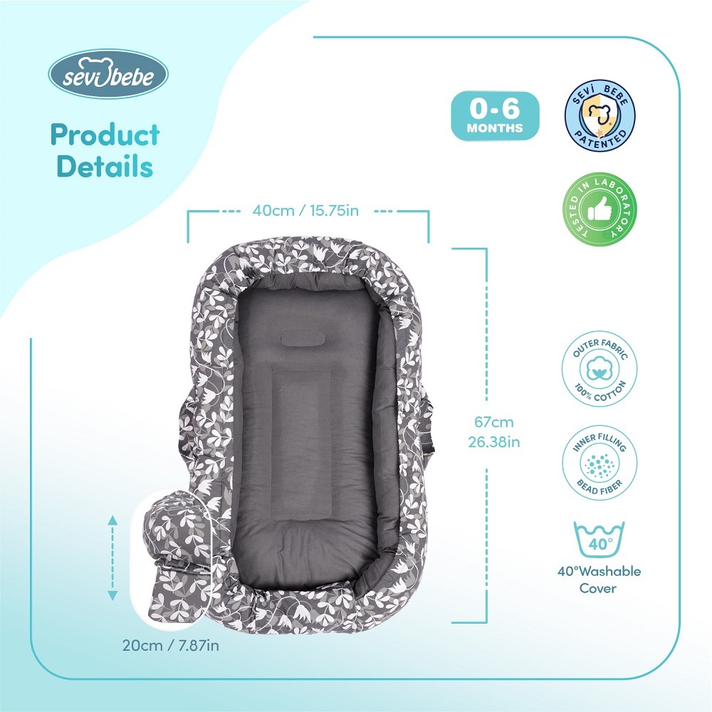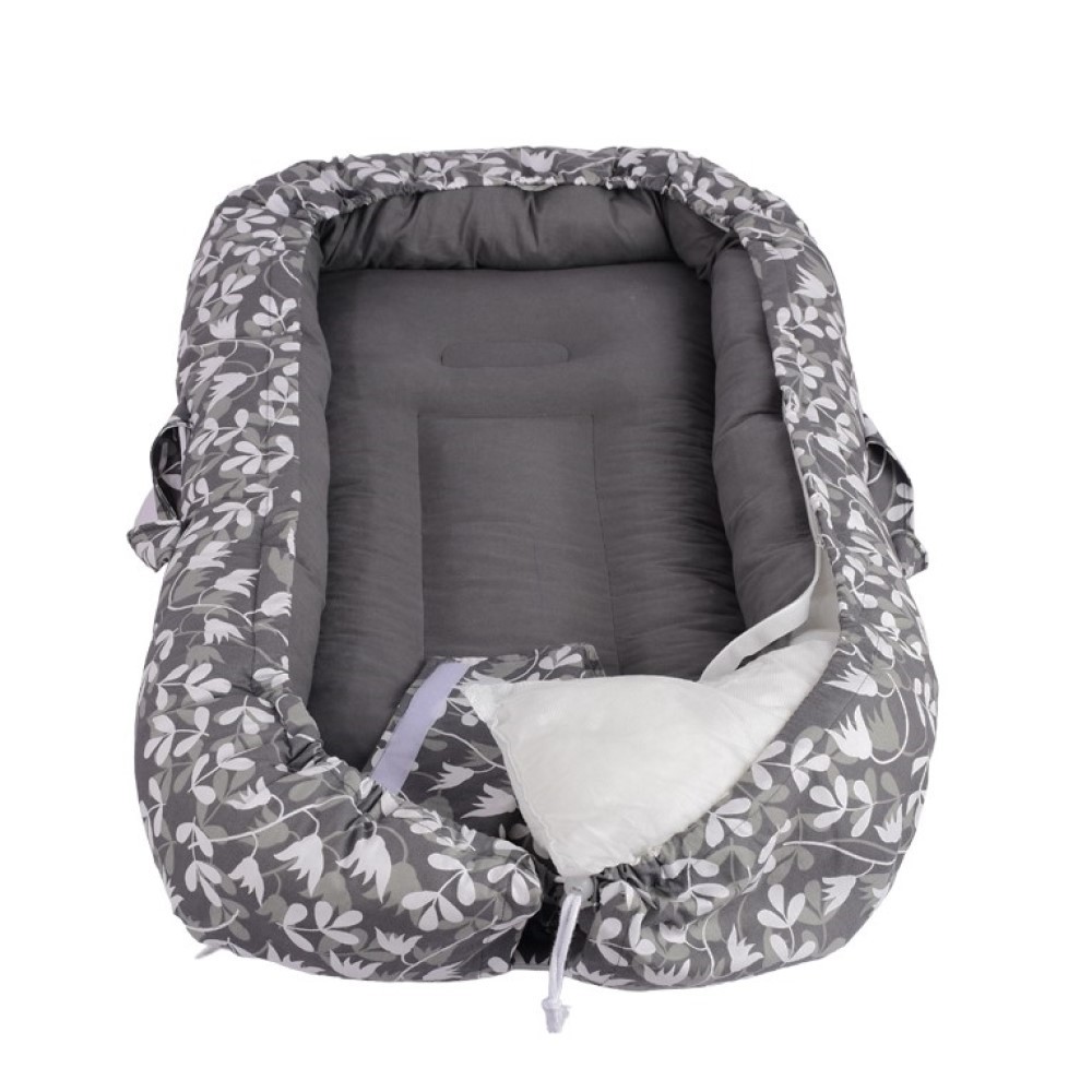 Co-sleeper Nest Antiregurgitare. Mama poate sa ia copilul in siguranta in pat pentru co-sleeping si alaptare. Un astfel de loc va permite copilului sa doarma mai bine. Interiorul este ergonomic si moale, bebelusul se va simti confortabil si in siguranta. Este in cocon potrivit pentru copii de la nastere pana la 6 luni. Fiind reglabil, creste impreuna cu bebelusul,slabiti snurul de la capat pentru a mari spatiul. Manere pentru transport. Suport antiregurgitare ce permite ventilatia, impiedicand astfel supraincalzirea bebelusului Husa detasabila:Bumbac 70%; Umplutura :Fibre din silicon; Dimensiunea interioara :28x60x2/8 cm Dimensiunea exterioara :42x 72x10/20 cm Greutate 0,9 kg