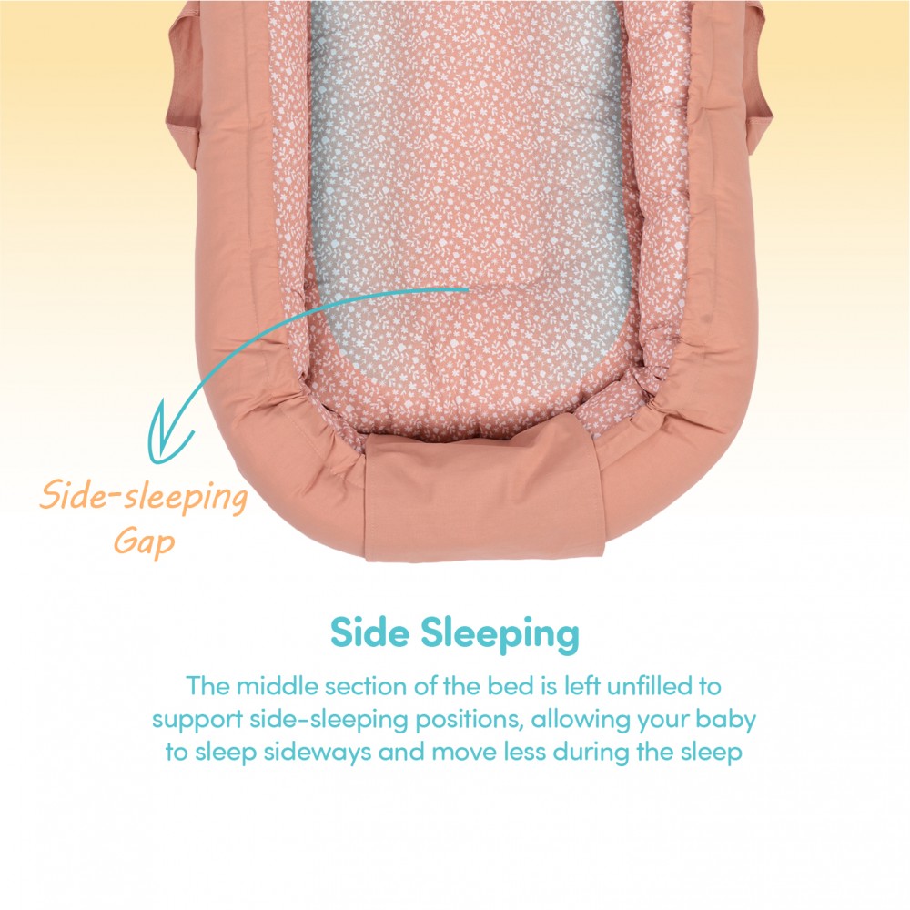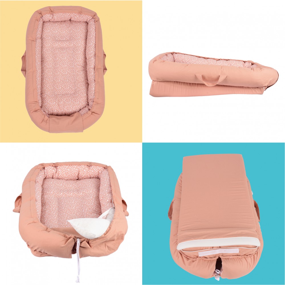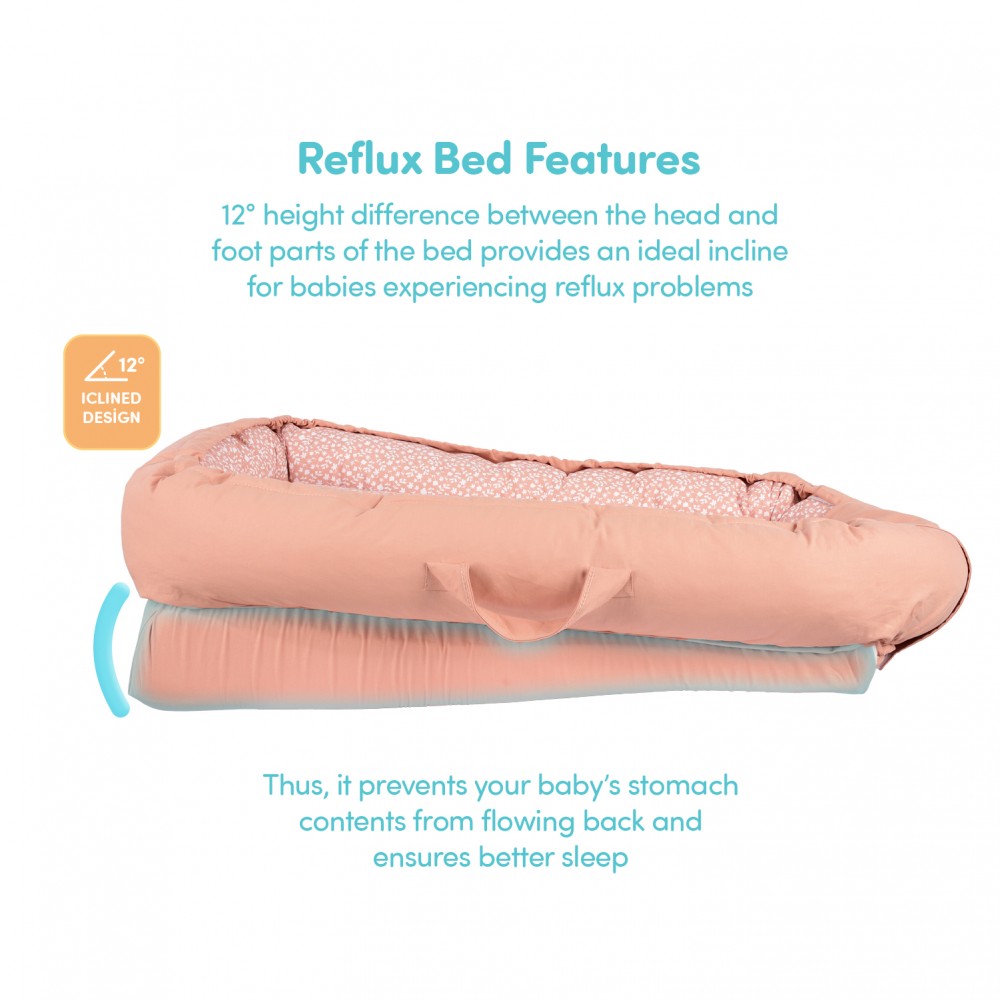 Co-sleeper Nest Antiregurgitare. Mama poate sa ia copilul in siguranta in pat pentru co-sleeping si alaptare. Un astfel de loc va permite copilului sa doarma mai bine. Interiorul este ergonomic si moale, bebelusul se va simti confortabil si in siguranta. Este in cocon potrivit pentru copii de la nastere pana la 6 luni. Fiind reglabil, creste impreuna cu bebelusul,slabiti snurul de la capat pentru a mari spatiul. Manere pentru transport. Suport antiregurgitare ce permite ventilatia, impiedicand astfel supraincalzirea bebelusului Husa detasabila:Bumbac 70%; Umplutura :Fibre din silicon; Dimensiunea interioara :28x60x2/8 cm Dimensiunea exterioara :42x 72x10/20 cm Greutate 0,9 kg