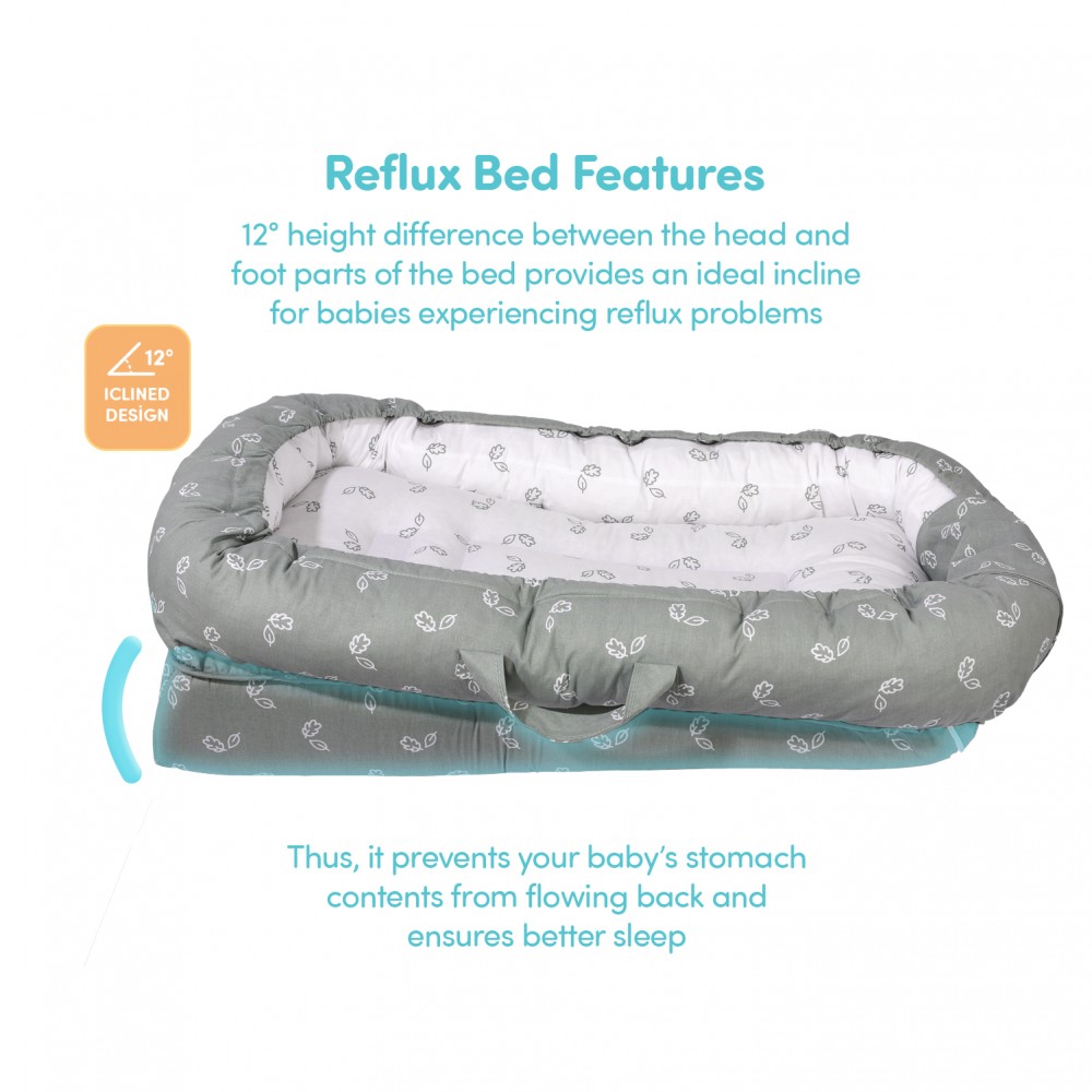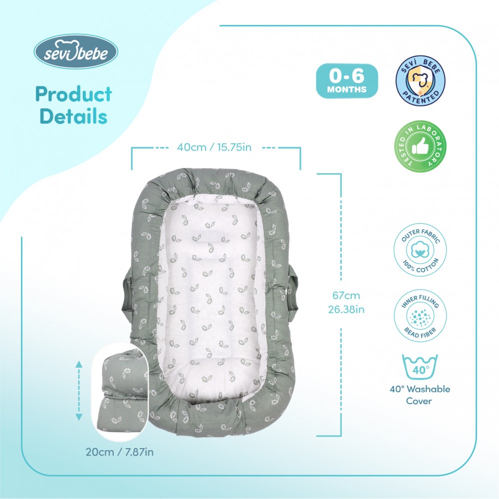 Co-sleeper Nest Antiregurgitare. Mama poate sa ia copilul in siguranta in pat pentru co-sleeping si alaptare. Un astfel de loc va permite copilului sa doarma mai bine. Interiorul este ergonomic si moale, bebelusul se va simti confortabil si in siguranta. Este in cocon potrivit pentru copii de la nastere pana la 6 luni. Fiind reglabil, creste impreuna cu bebelusul,slabiti snurul de la capat pentru a mari spatiul. Manere pentru transport. Suport antiregurgitare ce permite ventilatia, impiedicand astfel supraincalzirea bebelusului Husa detasabila:Bumbac 70%; Umplutura :Fibre din silicon; Dimensiunea interioara :28x60x2/8 cm Dimensiunea exterioara :42x 72x10/20 cm Greutate 0,9 kg
