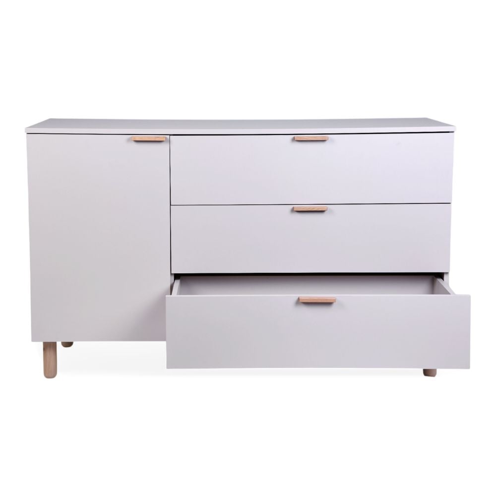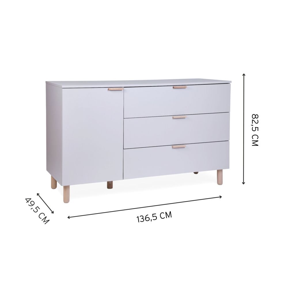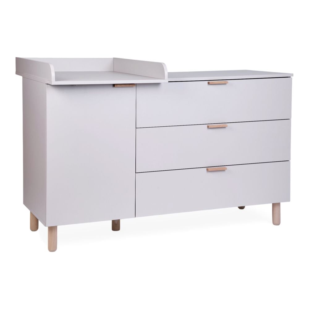 Pentru o rutina mai usoara, Comoda Childhome Clay 137x77x98 cm cu masa de infasat include 3 sertare si un compartiment cu usa, astfel incat sa poti separa rapid scutece, servetele, cosmetice, body-uri si accesorii. Cand ai totul la indemana, schimbatul si imbracatul devin mai rapide si mai relaxate.