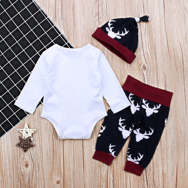 - pantaloni bleumarine, imprimati cu reni albi, cu banda elastica visinie in talie;