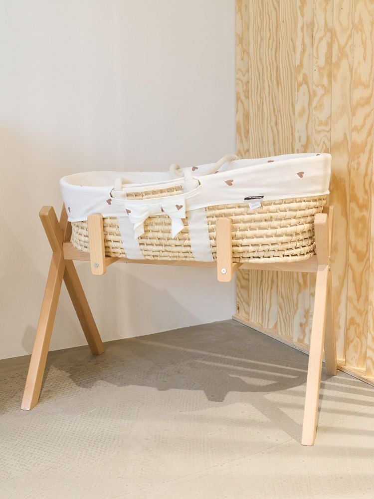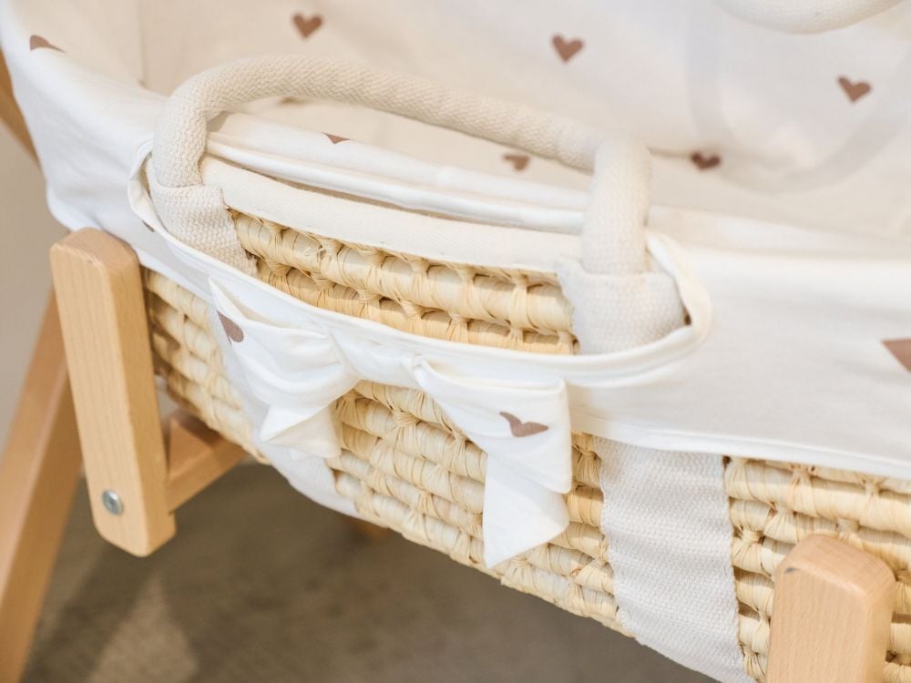 Caracteristici Cos bebe Childhome Moise din coji de porumb cu saltea, Husa Jerse cu Inimioare: