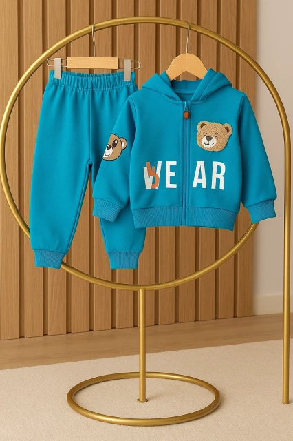 Acest produs Costumas 2 piese cu ursulet si hanorac cu gluga - Albastru Turcoaz este model TRMB10085