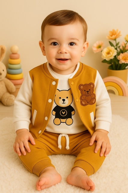 • Costumas 3 piese bebelusi cu ursulet - hanorac, bluza si pantaloni comozi trmd7434