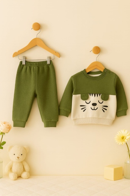 Acest produs Costumas baietel 2 piese verde cu pisicuta – confort si joaca este model TRMB7191-1