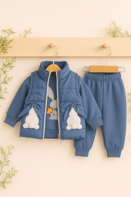Acest produs Costumas baietel 3 piese albastru – Vesta cu Iepuras, Bluza si Pantaloni Confortabili este model TRMB50611