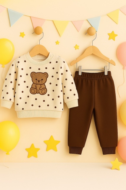 • Costumas bebe ursulet cu buline, bluza crem si pantaloni maro – set 2 piese trmd655