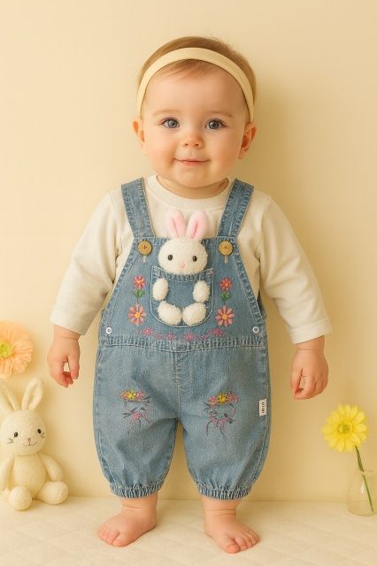 Acest produs Costumas bebelusi salopeta jeans iepuras si bluzita alba | Model adorabil este model TRMD943