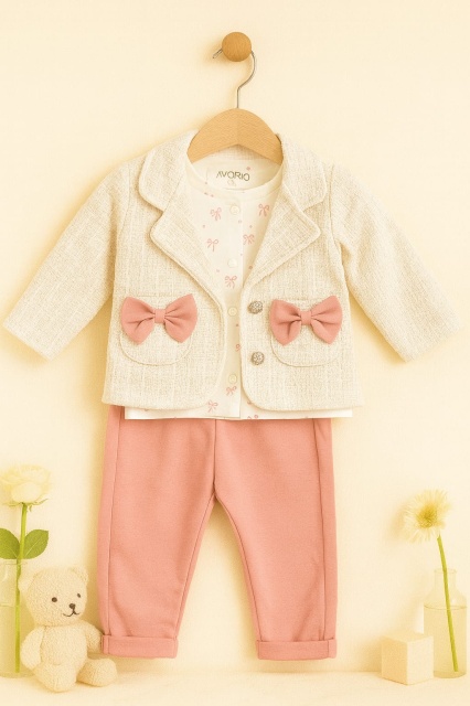 Acest produs Costumas elegant fetita cu sacou crem, pantaloni roz si bluzita - Confort si stil este model TRMB081