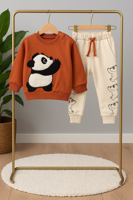 Acest produs Costumas panda vesel – Bluza si pantaloni comozi din bumbac este model TRMD270