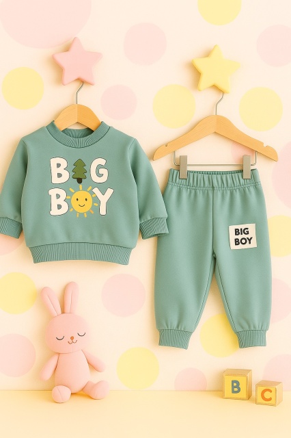 Acest produs Costumas pentru baietei 2 Piese - Bluza BIG BOY si pantaloni este model TRMBY925