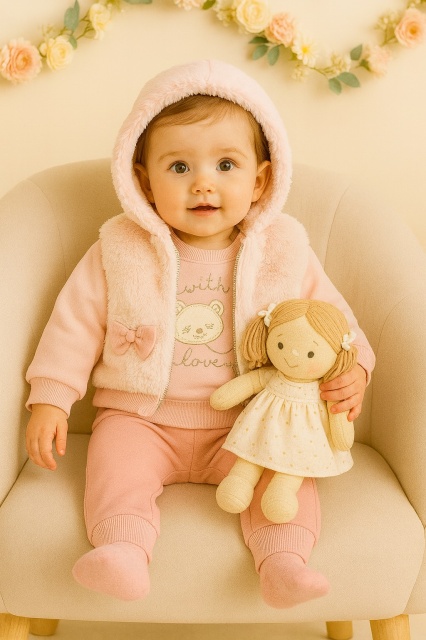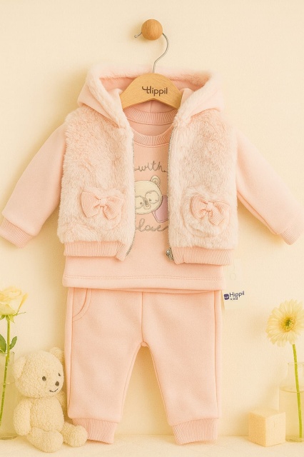 Acest produs Costumas roz bebelusi cu vesta pufoasa si fundite – set calduros Hippil este model TRMD5154