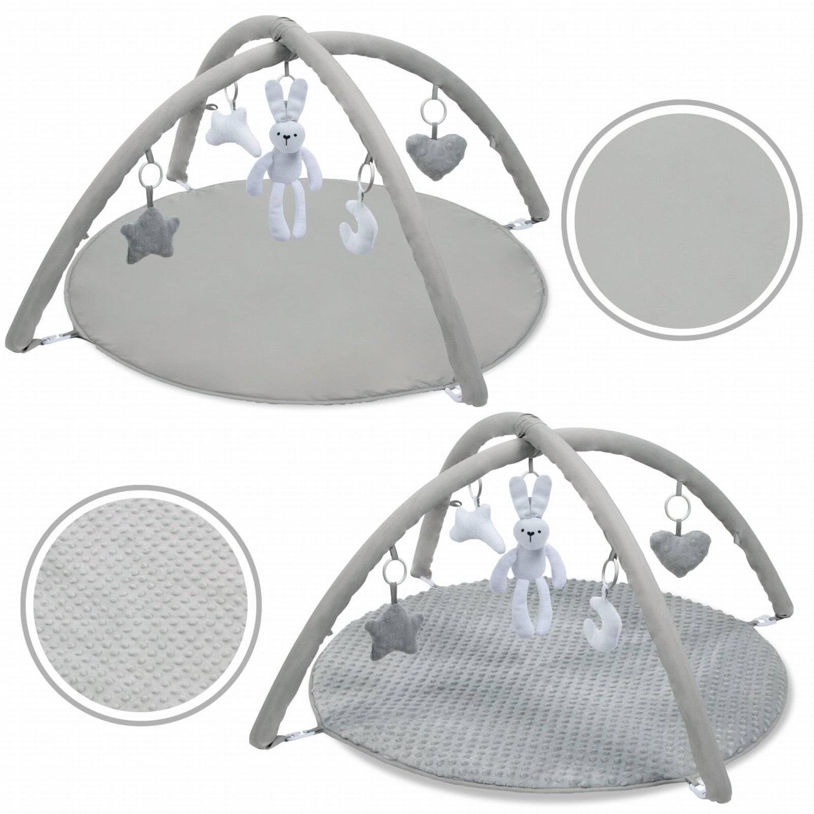 Creeaza un colt de joaca magic pentru bebelusul tau Covorasul de activitati Kidwell GRACE Bunny este locul perfect unde micutul poate descoperi lumea in siguranta, din primele zile de viata. Moale, pufos si plin de jucarii interactive, stimuleaza simturile copilului si il incurajeaza sa atinga, sa observe si sa asculte, transformand joaca intr-o experienta senzoriala completa. Designul sau scandinav, minimalist si elegant se integreaza perfect in orice camera de copil. Este practic, usor de curatat si ideal ca prim spatiu de explorare. Dezvoltare prin joaca Covorasul GRACE Bunny este gandit pentru a sprijini dezvoltarea naturala a bebelusului: Jucarii moi, de plus , stimuleaza atingerea si curiozitatea. Culori delicate si forme prietenoase , dezvolta vederea si atentia. Activitati tactile si sonore , sustin coordonarea mana-ochi. Cutie muzicala in forma de iepuras , ofera calm si relaxare. Arcuri reglabile cu 9 pozitii diferite , adaptabile in functie de varsta si preferintele copilului. Design practic si confortabil Covoras fata-verso , cu doua texturi: o parte din plus Minky pufos , pentru joaca si confort termic; o parte din tesatura moale monocolora , perfecta pentru vara. Usor de intretinut , se curata simplu si rapid. Portabil si pliabil , ideal pentru acasa sau calatorii. Jucariile pot fi detasate si folosite separat, inclusiv pe carucior. Cadoul ideal pentru un nou-nascut Universal , potrivit atat pentru fete, cat si pentru baieti. Elegant , design nordic, in nuante neutre de gri. Practic , se pliaza, se transporta si se spala cu usurinta. Ambalat frumos , in cutie colorata de cadou , gata de oferit. Specificatii tehnice Marca: Kidwell Model: GRACE Bunny Tip: Covoras educational cu arcade Culoare: Gri deschis Material: Plus Minky + poliester moale Dimensiuni: 85 Ãmdash; 85 Ãmdash; 50 cm Greutate: 1 kg Varsta recomandata: 0+ luni Set include: 5 jucarii moi Covoras cu arcade reglabile Cutie muzicala cu baterie incorporata Ambalaj: cutie carton colorat 56 Ãmdash; 46 Ãmdash; 8,5 cm Un inceput plin de tandrete Covorasul GRACE Bunny nu este doar un spatiu de joaca , este un loc unde se nasc primele descoperiri, zambete si sunete de uimire. Ofera-i bebelusului tau un inceput bland, intr-un spatiu sigur, confortabil si plin de dragoste.
