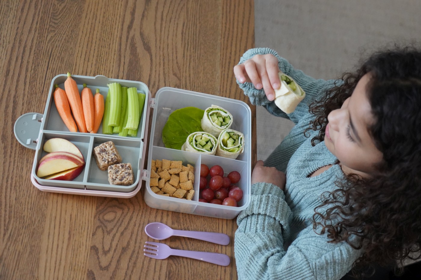 • CUTIE PRANZ BENTO 2 NIVELE CU TACAMURI MELII ROZ MOV GRI VIVML21500