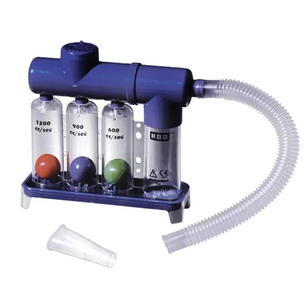 Dispozitiv pentru antrenamentul respiratiei , inspir si expir , destinat exercitiilor pulmonare. Tri-Gym , dispozitiv pentru antrenamentul respiratiei si reabilitarea pulmonara Tri-Gym este conceput pentru a lucra muschii implicati in inspir. Acesta indica volumul de aer inspirat prin trei bilute colorate, care arata vizual debitul de aer. Este recomandat pacientilor cu afectiuni ale cailor respiratorii, dar si persoanelor sanatoase care doresc sa-si imbunatateasca capacitatea pulmonara. Utilizat de doua ori pe zi, contribuie la oxigenarea organismului, faciliteaza eliminarea mucusului si reduce riscul de reinfectii respiratorii. Indicatii de utilizare pentru Tri-Gym: Fizioterapie si reabilitare a cailor respiratorii Dispozitivul poate fi folosit de un public larg. Medicii il recomanda in special pacientilor aflati in recuperare dupa boli pulmonare sau celor cu astm. Este potrivit si pentru persoane active, cum ar fi sportivii, care vor sa isi imbunatateasca performanta respiratorie. De asemenea, poate fi folosit in logopedie, pentru copii, ajutand la respiratie profunda si dictie mai clara. Caracteristici principale: - Permite exercitii separate pentru inspiratie si expiratie, fara a fi nevoie sa schimbi piesa bucala sau tubul. - Are doua supape independente pentru reglarea rezistentei la inspir si la expir (scala de la 0 la 9). - Functioneaza in doua moduri: inspir si expir, cu reglaje separate pentru fiecare. - Include trei cilindri gradati ce indica viteza fluxului de aer (600, 900, 1200 ml s). - Bilutele colorate din cilindri arata vizual debitul de aer in timp real. Permite exercitii pentru: - Inspiratie - Expiratie Dispozitivul este destinat utilizarii individuale. Se curata cu solutii blande. Nu se sterilizeaza.,