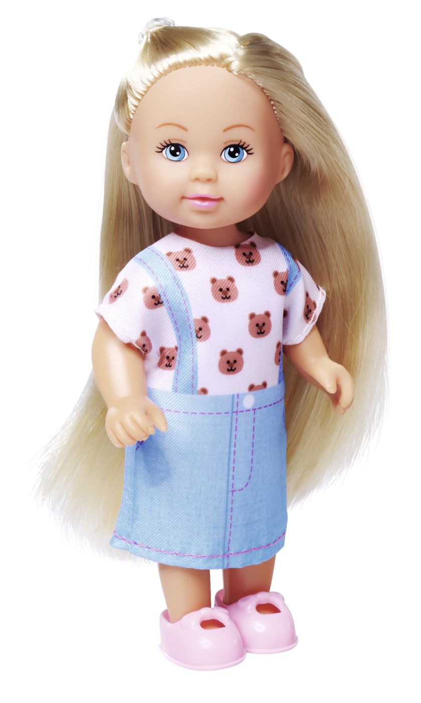 Set Fashion papusa Evi cu accesorii. Trei tinute dragute - Evi poarta o rochie din denim si vine cu alte doua tinute la moda cu imprimeuri adorabile pentru distractie creativa la imbracat. Include adidasi - Incaltamintea perfecta pentru fiecare look adidasii inclusi completeaza fiecare tinuta. Papusa la moda de 12 cm se potriveste perfect in mainile copiilor mici si este usor de luat oriunde. Perfecta pentru povesti imaginative despre imbracat, re-aranjare si joaca cu papusi. Potrivita pentru copii cu varsta de 3 ani si peste.