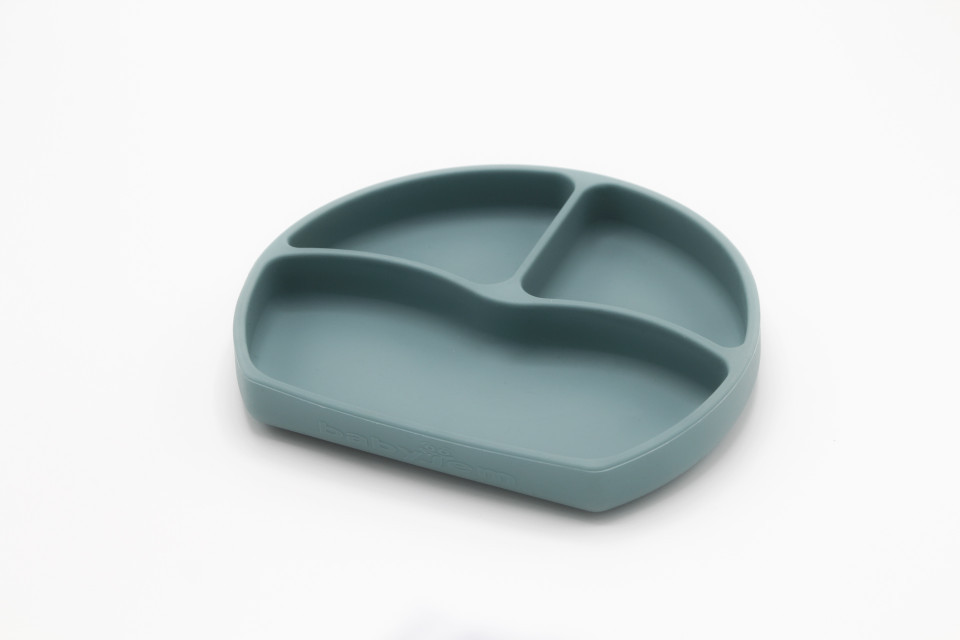 Farfurie semi-rotundă din silicon cu 3 compartimente, pentru bebelusi si copii mici. Forma semi-rotunda permite asezarea farfuriei mai aproape de copil, iar baza aderenta previne rasturnarea.