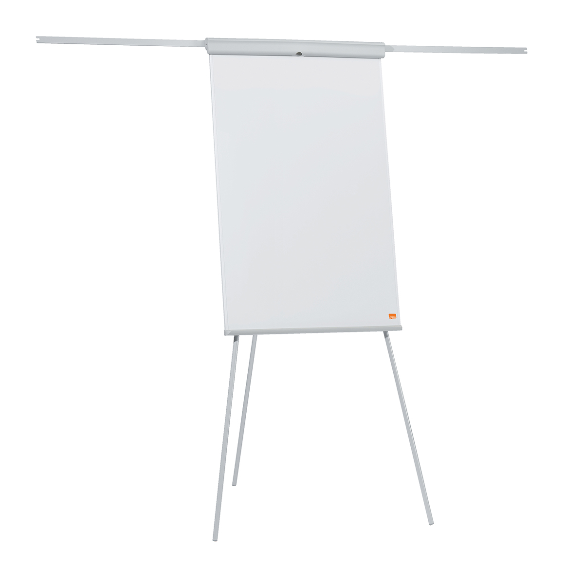 Flipchart cu tavita pentru marker integrata si doua brate de afisare extinse pentru atunci cand trebuie afisate pagini suplimentare.
