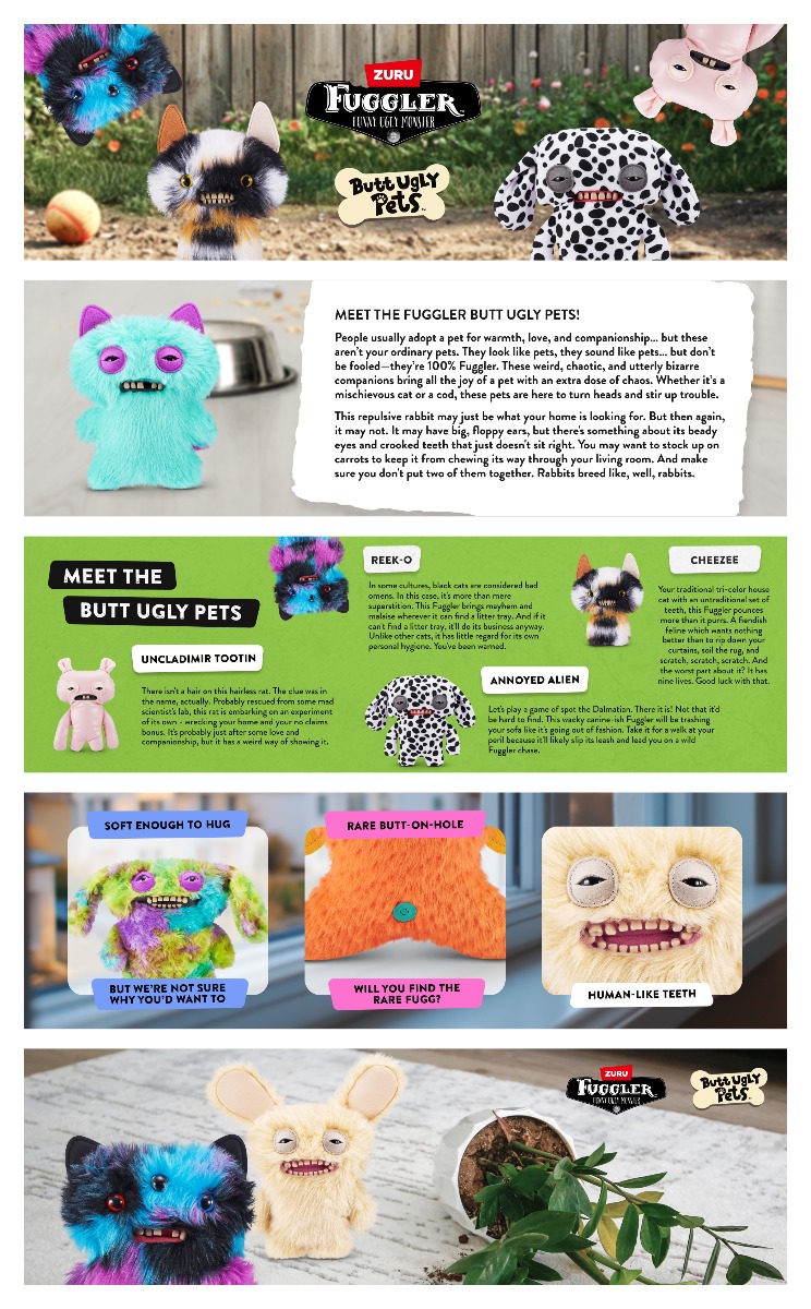 Fa cunostinta cu Fugglers – Animalele de companie teribil de dragute! Oamenii adopta de obicei un animal pentru afectiune, iubire si companie... dar acestea nu sunt animale obisnuite. Arata ca niste animale, suna ca niste animale... dar nu te lasa pacalit – sunt 100% Fuggleri. Aceste creaturi ciudate, haotice si complet bizare aduc toata bucuria unui animal de companie, dar cu un plus de nebunie. Fie ca e vorba de o pisica poznasa sau un dalmatian obraznic, aceste „monstruleti” sunt aici sa atraga priviri si sa starneasca haos. 10 de colectionat!