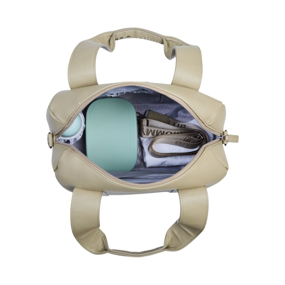 'In interior, Geanta de bebe Childhome Mommy Club piele Verde te ajuta sa ramai ordonat: buzunarele elastice tin la indemana lucrurile pe care le cauti cel mai des, iar pouch-ul izolator este util cand vrei sa pastrezi continutul la o temperatura potrivita pe durata drumului. Pentru iesiri scurte, formatul compact este un mare avantaj, fara sa renunti la functionalitate.