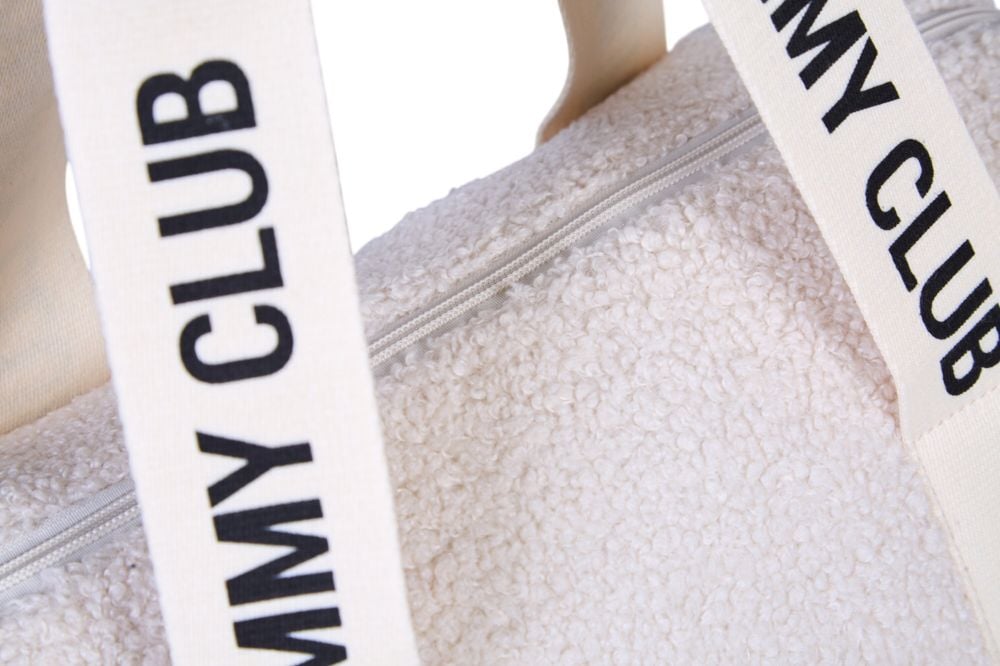 'Geanta de bebe Childhome Mommy Club Signature Teddy Offwhite este o geanta de infasat compacta, gandita pentru iesiri scurte si zile active, cand vrei sa iei doar lucrurile esentiale. Cu un volum de 22 L si un design tip \"\"everyday bag\"\", Geanta de bebe Childhome Mommy Club Signature Teddy Offwhite este potrivita pentru munca, intalniri, plimbari sau drumuri rapide cu bebe.