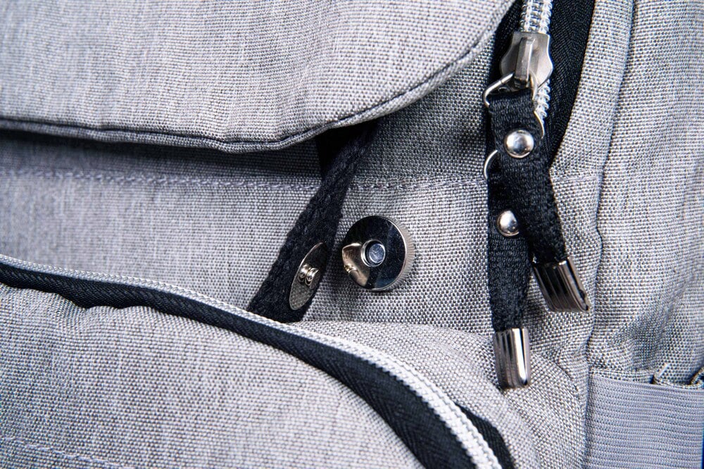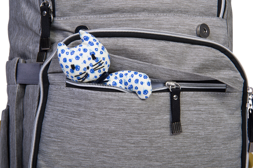 Folia PET reflectiva din compartimentul frontal pastreaza biberonul la temperatura pana la 4 h, fara pungi de gheata. Fermoarul YKK poate fi actionat cu o singura mana, esential cand tii bebelusul in brate.