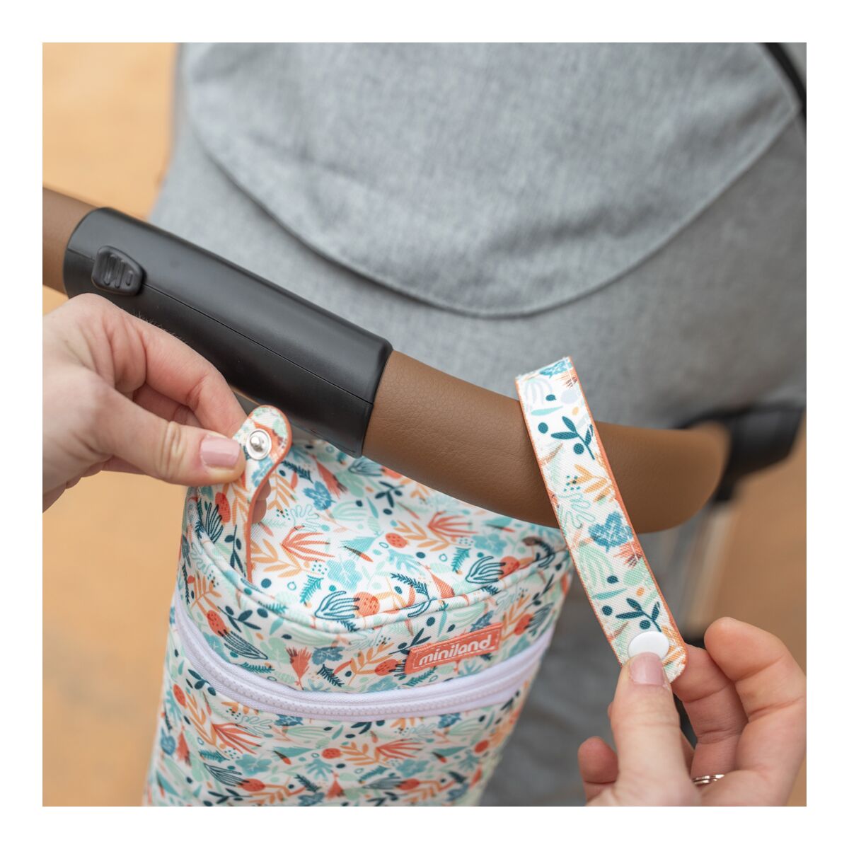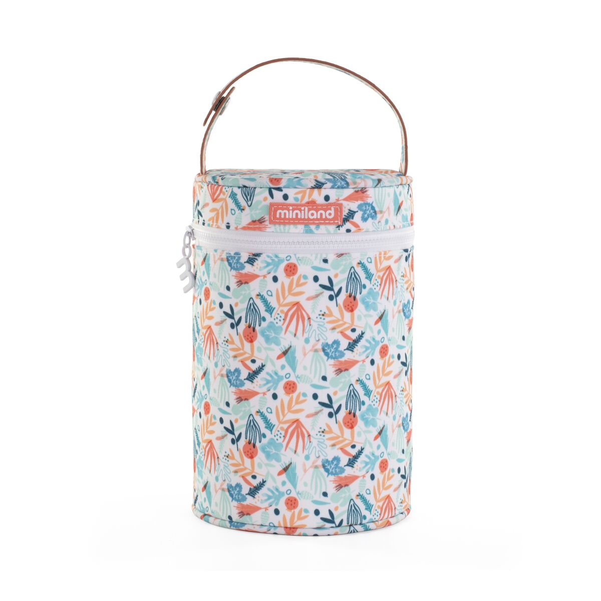 Geantă cu capacitate mare pentru a transporta mâncarea bebelușului în termosuri cu o capacitate de până la 700 ml. Oferă izolație suplimentară împotriva schimbărilor de temperatură și a loviturilor. Ușor de transportat și decorată cu un frumos motiv mediteranean, geanta are, de asemenea, o capacitate suplimentară pentru a depozita și transporta întotdeauna bavețica sau tacâmurile bebelușului, astfel încât să fii mereu pregătită când vine vorba de hrănire.   Menține temperatura și mai mult timp Un strat suplimentar de izolație care protejează termosul de schimbările de temperatură și menține temperatura lichidelor mai mult timp. O atingere veselă pentru termosurile cu lichide de toate dimensiunile Gentile izotermice Thermibag au fost special concepute pentru termosuri de 350 ml, 500 ml și, respectiv, 700 ml și le permit părinților să decoreze termosul cu culoarea lor preferată. În plus, sunt ideale pentru utilizare împreună cu termosurile de la Miniland. Materiale durabile pentru o protecție mai mare Fabricate din materiale extrem de durabile care îmbunătățesc conservarea termosului împotriva abraziunii și îl protejează împotriva loviturilor și zgârieturilor. Pentru plimbari si calatorii Părinții vor putea alege dimensiunea care se potrivește cel mai bine fiecărui termos pentru a-l transporta oriunde. Perfect pentru călătorii sau pentru a lăsa bebelușul în grija altcuiva. În plus, geanta are un mâner pentru a o agăța de cărucior cu confort total. Mâncarea bebelușului este mereu gata Părinții pot pregăti mâncarea bebelușului acasă și o pot lua oriunde, menținându-o la temperatura dorită timp de ore întregi. Deschidere superioară cu fermoar Puteți folosi termosul confortabil datorită deschiderii cu fermoar din partea superioară a genții termice, fără a fi nevoie să o scoateți.   Dimensiune 11.4 x 16 (d x h)
