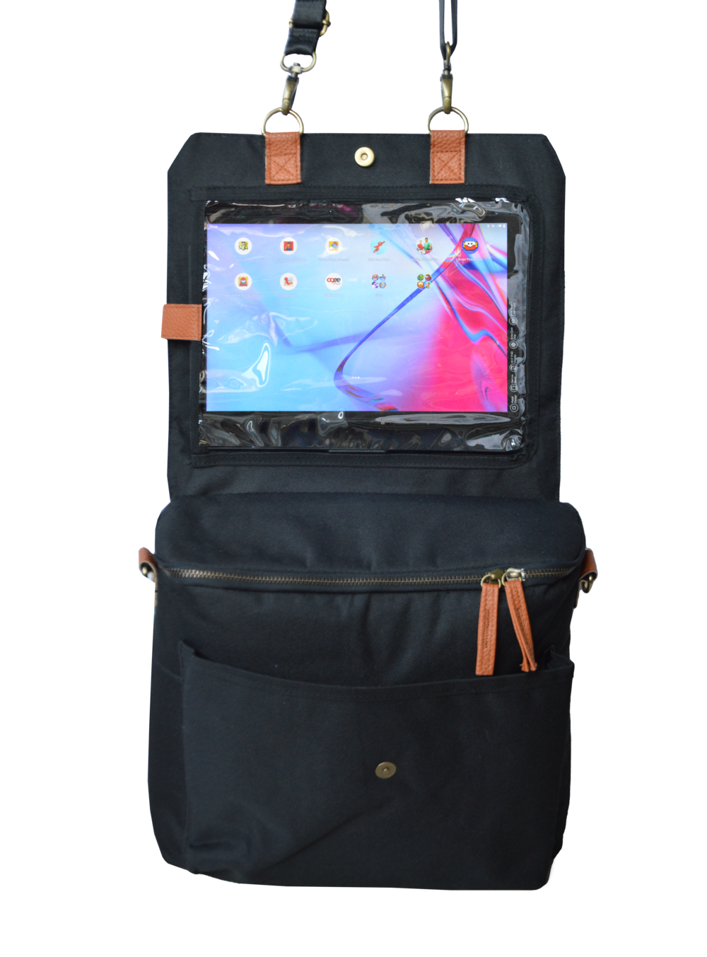 Cureaua detasabila transforma Geanta organizare Baby On Board Smart Organiz Black intr-o geanta cross-body sigura in cafenea sau magazine.Curatare rapida
