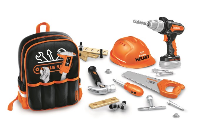 Pe langa masina de gaurit, ghiozdanul contine si o casca de protectie pentru a asigura siguranta copiilor in timpul activitatilor de constructie. Aceasta casca ii va face pe cei mici sa se simta ca adevarati constructori si ii va proteja in acelasi timp.