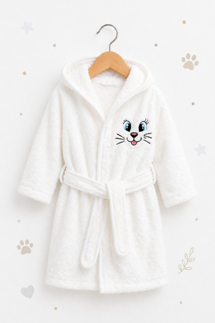 Acest produs Halat de baie alb pentru copii Pisicuta este model BHL3
