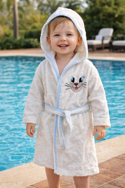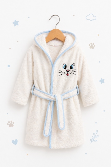 • Halat de baie pentru baieti ivoire pisicuta bhl2
