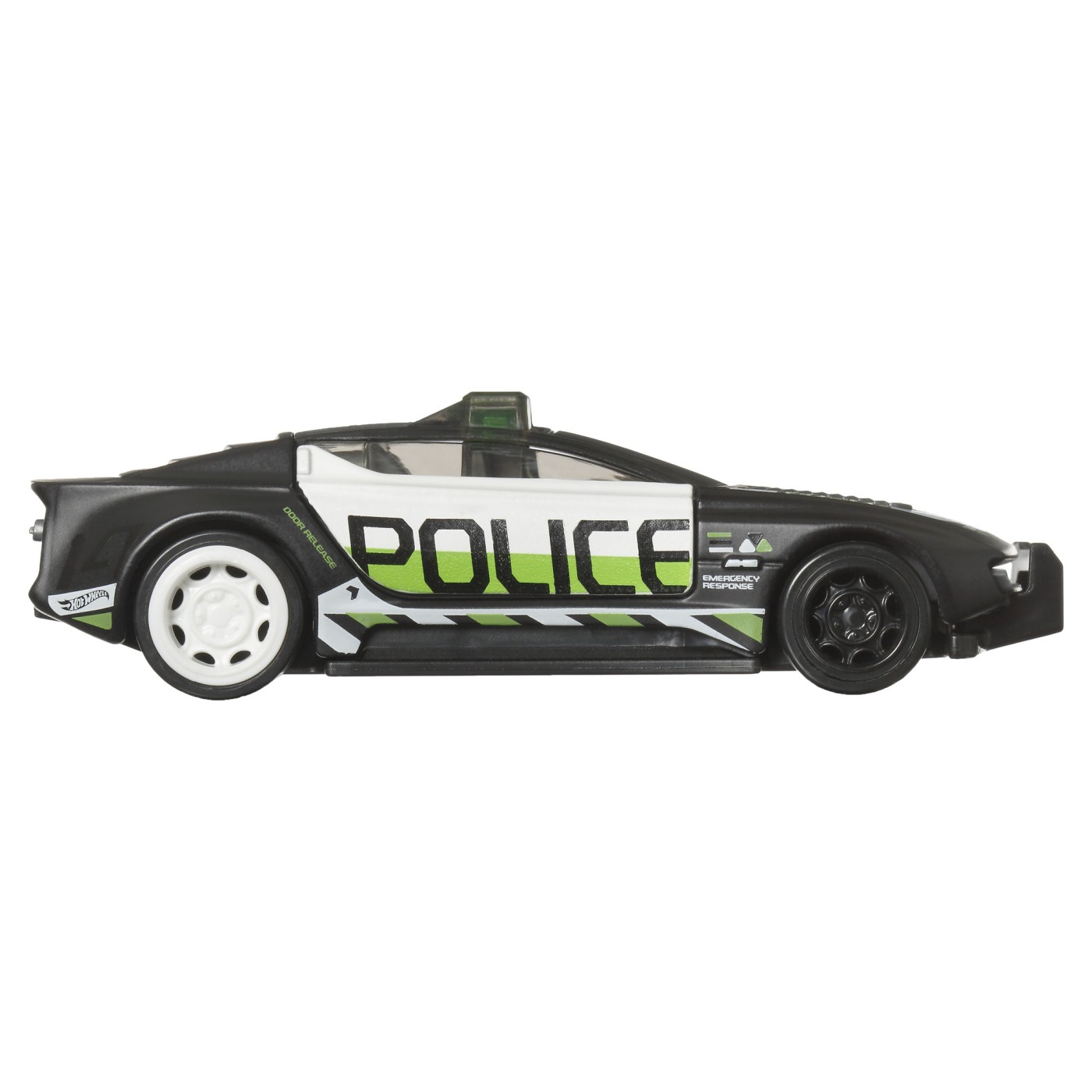 Aceste vehicule din metal Hot Wheels sunt la scara 143, cu decor autentic. Fiecare include o caracteristica interactiva precum Rolomatics, care evidentiaza miscarile motorului, sau usile, capotele sau portbagajul care se deschid. Cu detalii atat de grozave, posibilitatile de joaca sunt nesfarsite pentru copii, iar colectionarii le vor dori pe toate. Fiecare se vinde separat, in functie de disponibilitate. Culorile si decoratiunile pot varia. Acest pachet contine masinuta Police Alpha Pursuit.
