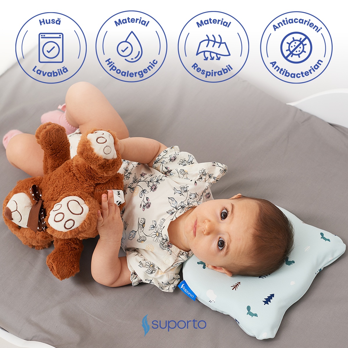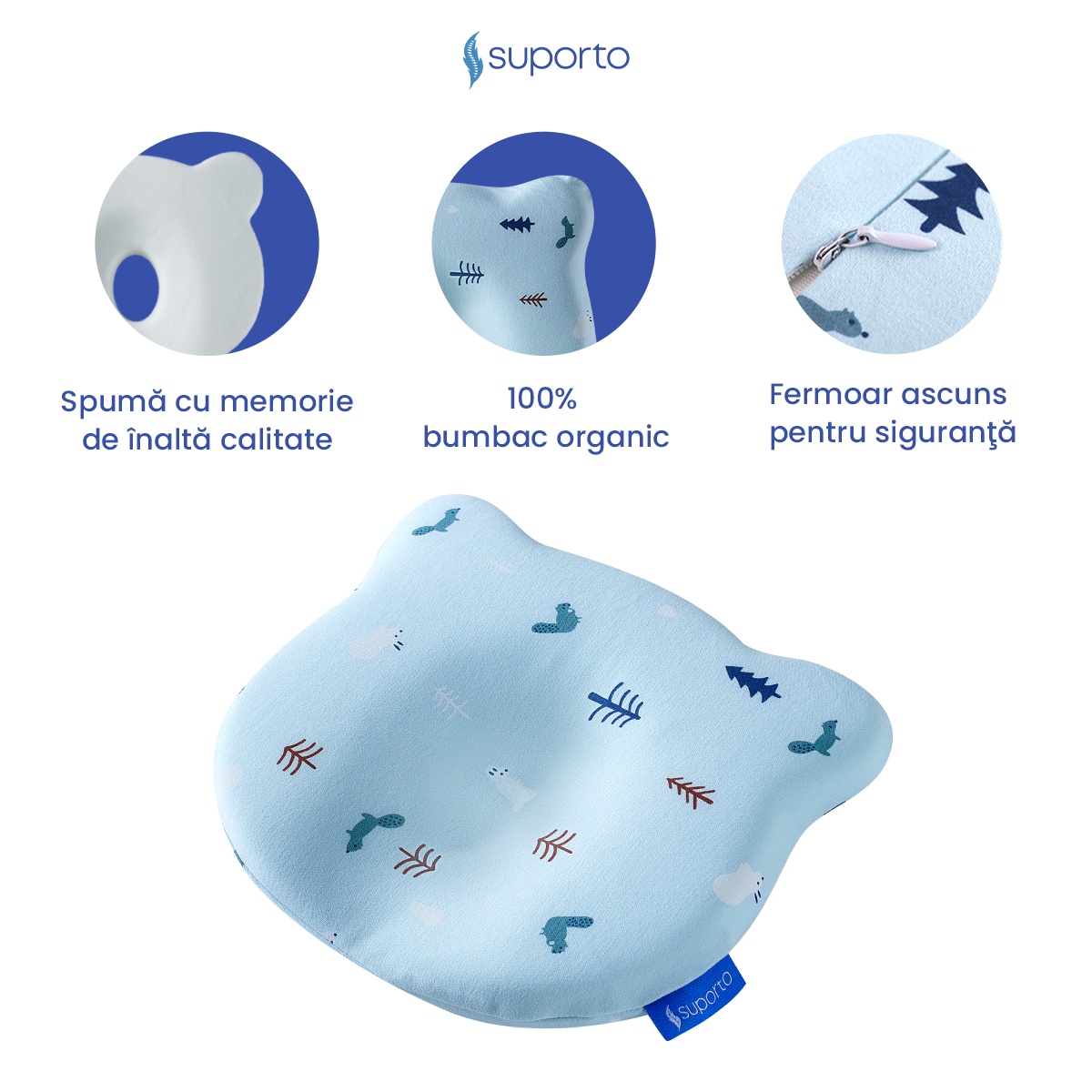 Husa de schimb pentru Perna Bebelusi Suporto Ursulet, 0-12 Luni, Impotriva Plagiocefaliei, Ortopedica si Hipoalergenica, Albastră. Husa se potriveste pentru acest model de Perna pentru nou nascuti: ???? Link Pernă Fata de pernă multicoloră din bumbac 100% este un produs de înaltă calitate, conceput special pentru a asigura igienă copiilor în timpul somnului lor. Această față de pernă are o serie de caracteristici și beneficii care o fac o alegere excelentă pentru părinți. Husă hipoalergenică și lavabilă: Husa pernei este hipoalergenică, ceea ce o face potrivită pentru copiii cu piele sensibilă sau alergii. De asemenea, husa este lavabilă, ceea ce înseamnă că o poți curăța ușor și o poți menține curată și proaspătă. Husă respirabilă: Materialul din bumbac 100% permite pernei să fie respirabilă, asigurând o circulație adecvată a aerului. Aceasta previne acumularea de căldură și umiditate, asigurând un mediu confortabil și răcoros pentru copilul tău. Material din bumbac 100%: Fata de pernă este fabricată integral din bumbac, un material natural și moale. Bumbacul este cunoscut pentru proprietățile sale de a fi delicat cu pielea sensibilă a copiilor și oferă o senzație plăcută la atingere. Ușor de curățat și de schimbat: Husa pernei este ușor de curățat și de înlocuit. Poți spăla husa în mașina de spălat conform instrucțiunilor de îngrijire, ceea ce facilitează menținerea igienei și proaspătății pernei. Anti Acarieni: Această față de pernă este tratată pentru a fi rezistentă la acarieni, ceea ce contribuie la menținerea unui mediu curat și sănătos pentru copilul tău. Fermoar invizibil: Fata de pernă este prevăzută cu un fermoar invizibil, care nu doar asigură o închidere sigură, ci și conferă un aspect estetic plăcut pernei. Fără miros: Fata de pernă nu are miros neplăcut, asigurând un mediu curat și proaspăt pentru copilul tău. Fata de pernă din bumbac 100% oferă un pachet complet de beneficii pentru copilul tău. De la husa hipoalergenică și lavabilă, până la materialul respirabil și confortabil din bumbac, această față de pernă este proiectată pentru a oferi confort și igienă în timpul somnului copilului tău. Adițional, durabilitatea și designul atrăgător fac din această fata de pernă o alegere excelentă pentru a completa decorul camerei copilului. Forma ortopedica ajuta la pozitionarea corecta a capului in timpul somnului. De asemenea, perna ajuta la modelarea formei capului copilului. Perna ortopedica a fost conceputa pentru a face copilul să se simtă ușor și vesel după somn, sa se trezeasca odihnit si sa se dezvolte corespunzator. Ofera-i copilului tau o perna ortopedica de calitate pentru o dezvoltare armonioasa! GARANȚII SUPORTO: Livrare rapidă sau banii înapoi Îți promitem livrare rapidă prin curier rapid în maxim 2 zile lucrătoare * pe tot teritoriul României sau îți returnăm de 2 ori banii pentru transport. *suma se va returna în contul bancar sau se va emite un voucher echivalent, la alegere *valabil pentru tot parcursul anului cu excepția perioadei care cuprinde Black Friday și Crăciun 10 noi. - 25 dec. Garantie: 24 luni Perioada de retur: 14 zile. Perioada de retur extinsa pana la 60 zile pentru acest produs, vezi in ce conditii aici.