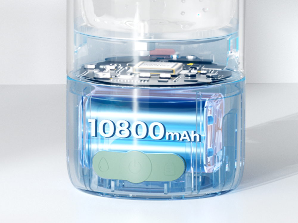 Componentele pentru contact cu lichidul sunt realizate din materiale potrivite pentru uz alimentar, usor de clatit si de uscat intre utilizari. Pentru performanta constanta, goleste si sterge rezervorul dupa folosire si incarca dispozitivul cand indicatorul de baterie avertizeaza.