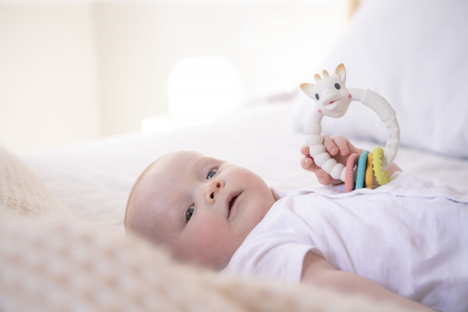Acest inel gingival este vesel colorat si cu diferite texturi. Inelul gingival Colo'rings este fabricat din cauciuc 100% natural, extras din arborele de Hevea. Culorile utilizate sunt de origine alimentara. Numeroasele texturi il vor ajuta pe bebelus sa isi calmeze durerile gingivale. Pe inel sunt exista 4 forme geometrice colorate diferit. Inelul este foarte usor si ergonomic, bebelusul putandu-l manevra cu usurinta.
