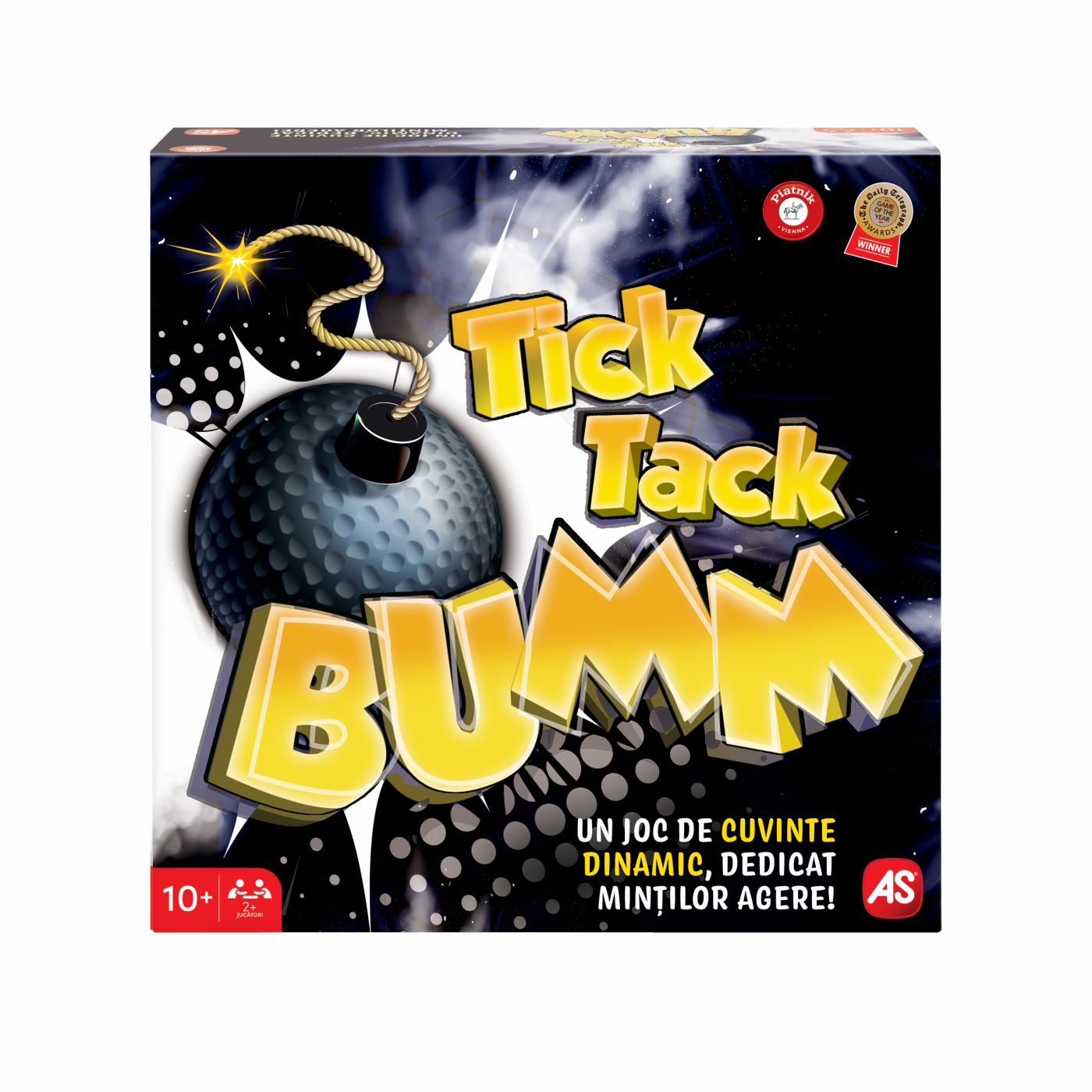Arunca zarul pentru a vedea unde in cuvant trebuie folosite literele de pe carte. Activeaza bomba, extrage o carte si gandeste rapid un cuvant care sa contina toate literele, tinand cont de regula stabilita de zar. Da bomba urmatorului jucator, care va trebui sa gaseasca un cuvant diferit cu aceleasi litere. Scapa de bomba inainte sa explodeze in mainile tale! Atentie timpul exploziei este aleator, deci bomba poate exploda in orice moment! Numar jucatori 2+. Varsta recomandata 10+ ani. Durata medie a jocului 30 minute. Jocul include 1 bomba electronica, 1 zar, 110 carti, brosura cu instructiuni.