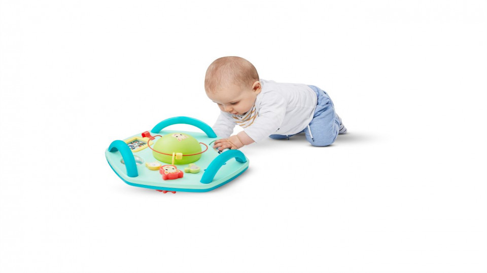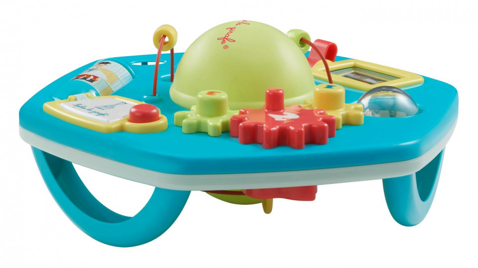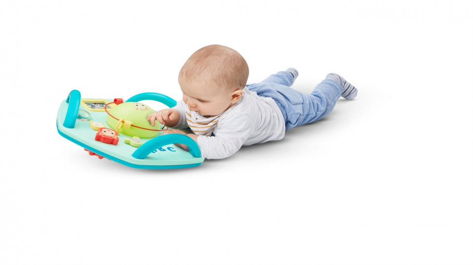 Designul unic al jucariei cu activitati Vice-Versa ofera bebelusilor ore intregi de divertisment! Usor de transportat, cu ajutorul manerelor sale, pentru a-ti insoți copilul oriunde ar merge. Este o masuta de activitati cu doua fete cu intoarcere la 360° pentru multiple posibilitati de activitati de joaca! Aceasta jucarie progresiva ofera mai multe pozitii de joc: pe burta, asezat, in patru labe etc.... Cu adevarat inovatoare! Odata rasturnata, datorita mingii si manerelor sale moi, placa devine un spatiu pentru dezvoltarea abilitatilor motorii si ii ofera copilului mai multe modalitati de a se juca!