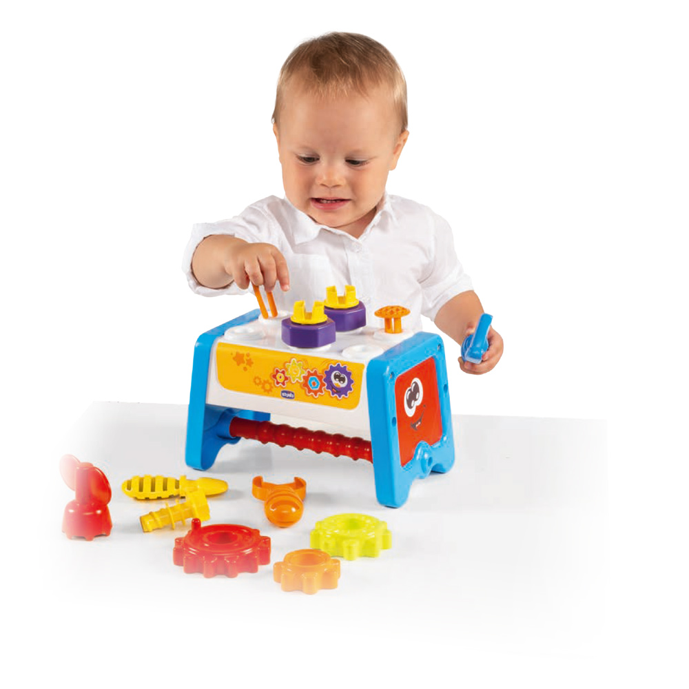 Statia de lucru a mecanicului de la Chicco este o jucarie mecanica care ajuta copilul sa inteleaga legatura cauza-efect prin joc.