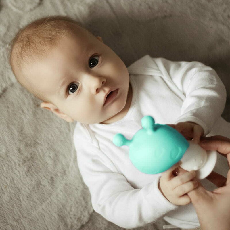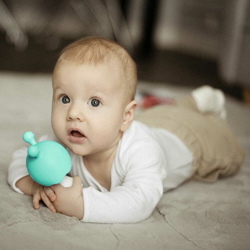 ✔️ Fabricata din silicon moale, aceasta jucarie este delicata cu gingiile sensibile ale bebelusului.