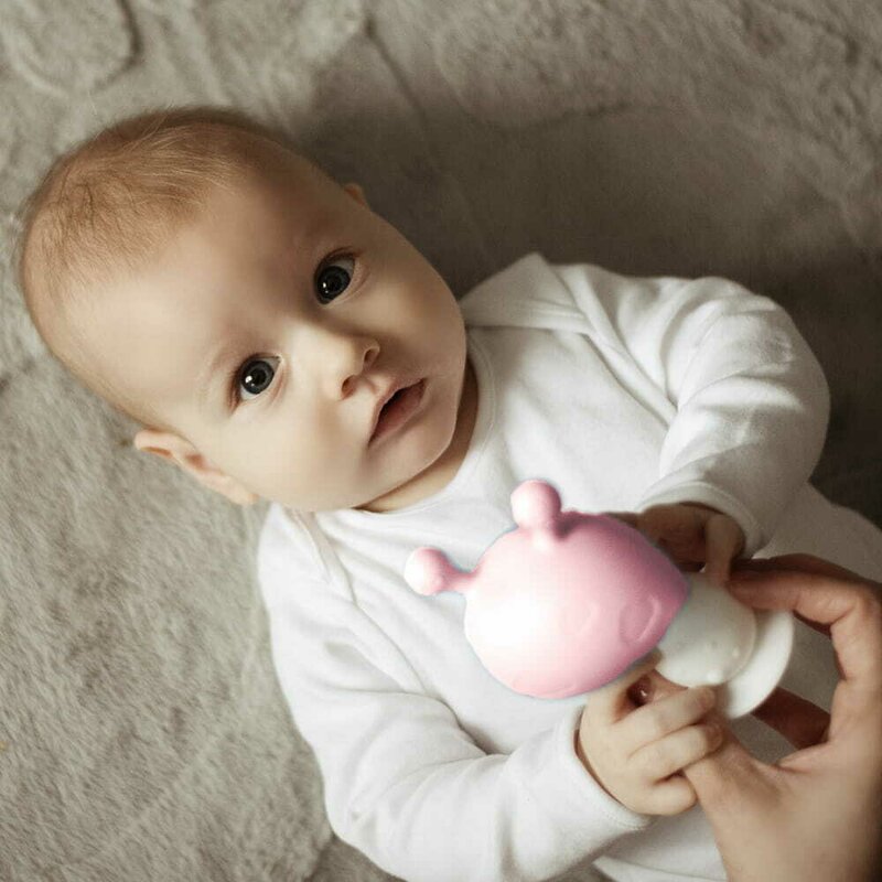 ✔️ Fabricata din silicon moale, aceasta jucarie este delicata cu gingiile sensibile ale bebelusului.