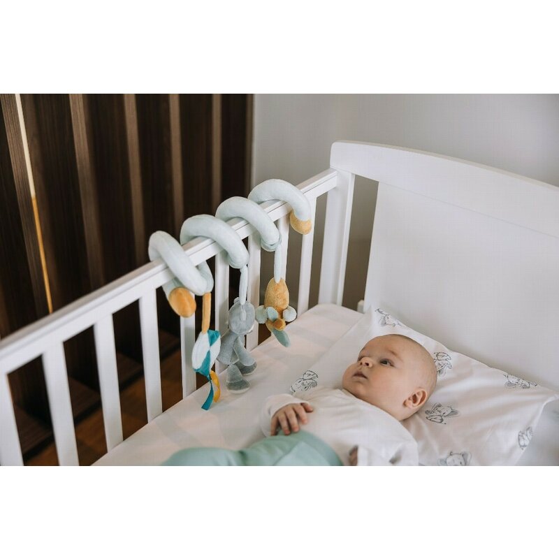 Design spiral pentru montare usoara pe patut, carucior sau scoica auto