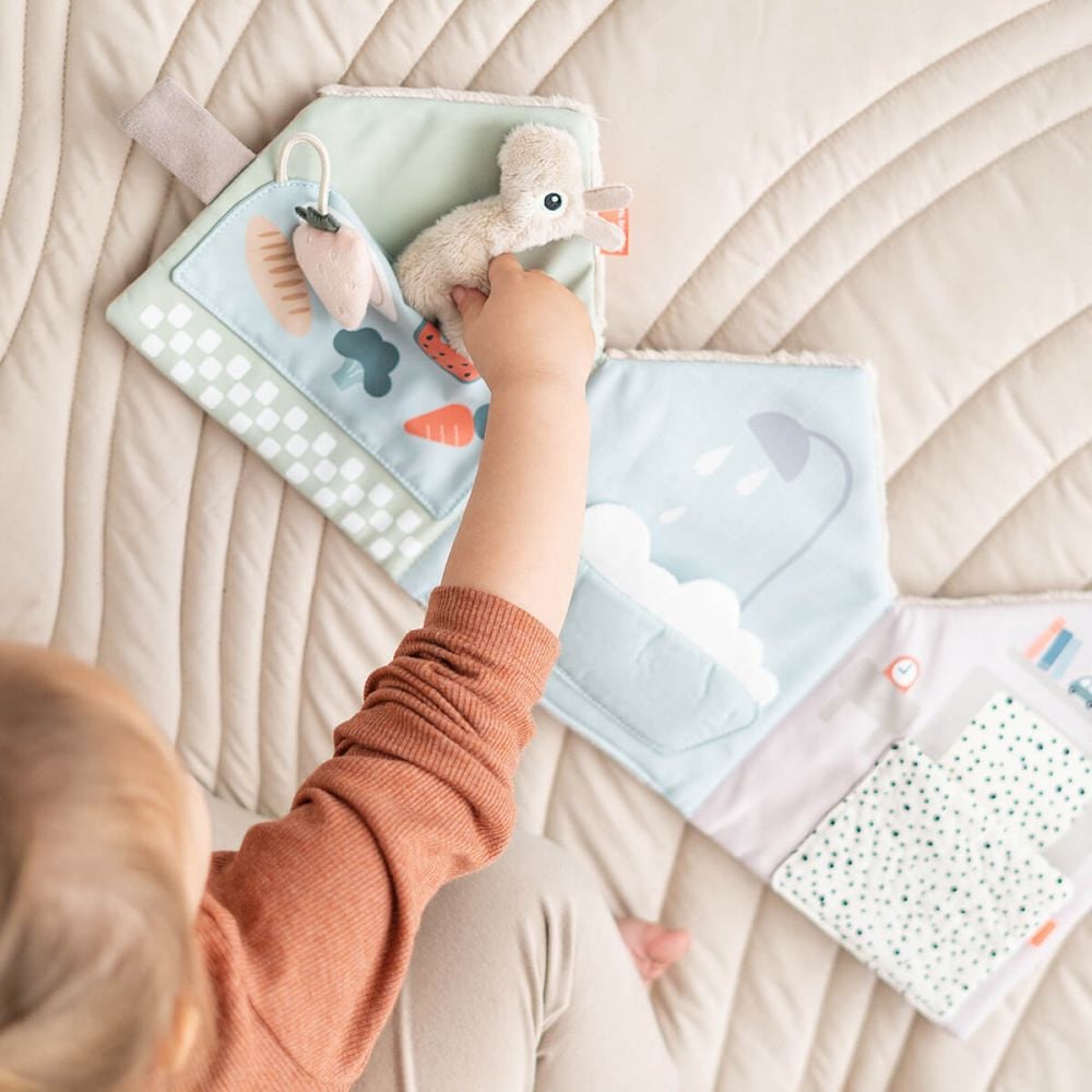 Daca iti doresti o activitate blanda, interactiva si educativa, Jucarie senzoriala carticica de plus casa lui Lalee Done by Deer Lalee Sand este alegerea potrivita pentru timp de calitate si povesti memorabile.