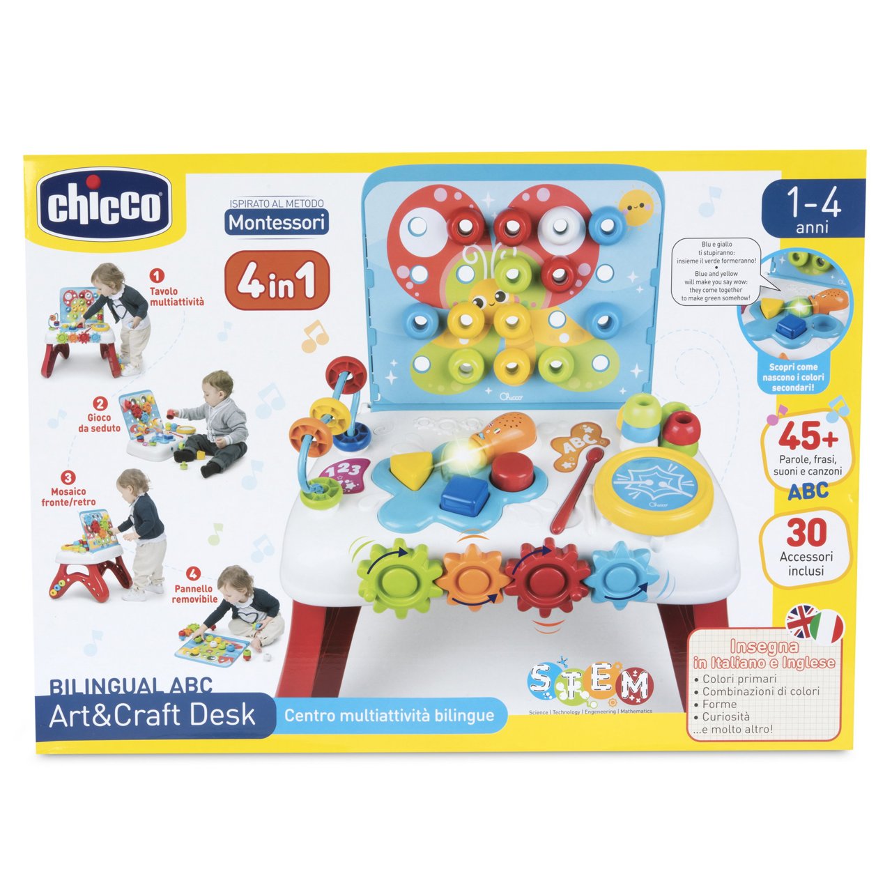 Ultima actualizare a informațiilor de prezentare pentru Jucarie tip Montessori Chicco centru de activitate Masuta educativa, FR/EN, 1-4ani CHC1155030-1 a fost efectuată la data de 17.04.2026