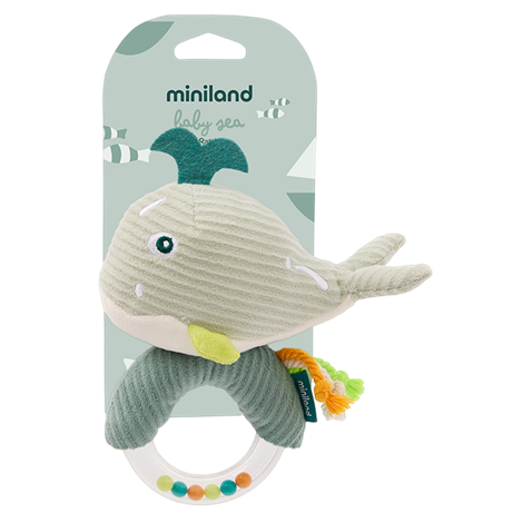Miniland Baby Zornăitoare cu balenă – Jucărie moale pentru bebeluși