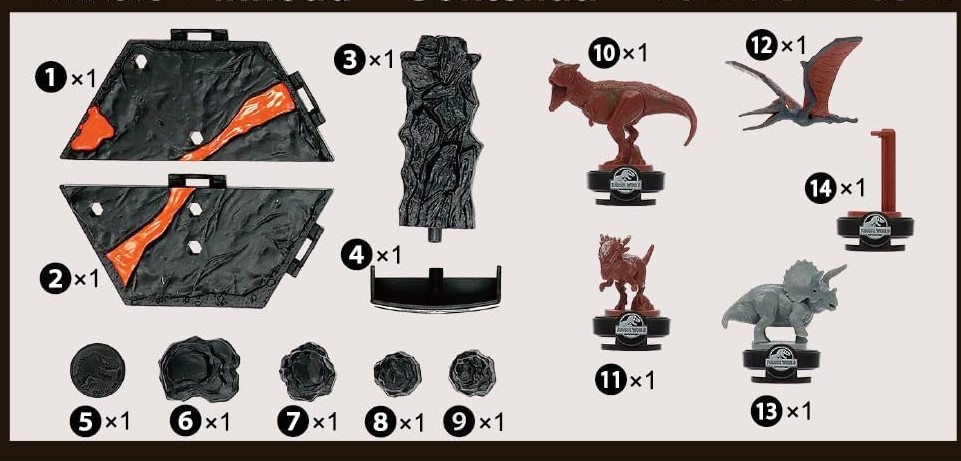 De la EPOCH Games! Joc de echilibru cu scenă cu tematică Jurassic World și piese dinozauri! Jurassic World Cutremurul Vulcanului este un joc simplu de echilibru. Aruncă medalia și mută figurina sau piesa de piatră pe scenă. Ai grijă să nu răstorni piesele de pe scenă! Sunt incluse 4 figurine dinozauri Jurassic World (Carnotaurus, Triceratops, Stygimoloch, Pteranodon).