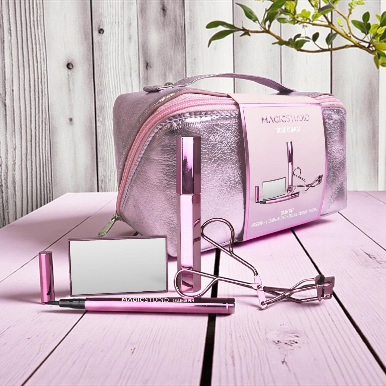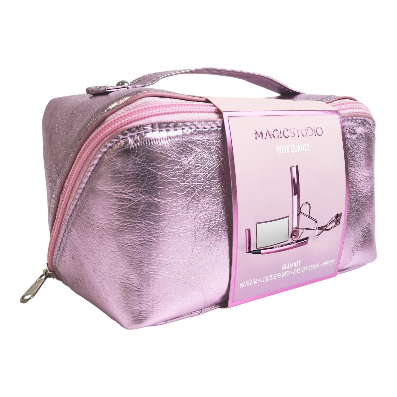 Redescoperă farmecul eleganței feminine cu Rose Quartz Glam Kit de la Magic Studio – un set complet de machiaj, perfect pentru ochi seducători și un look impecabil în orice moment al zilei.Acest neceser elegant, cu finisaj metalizat roz și design modern, conține tot ce ai nevoie pentru a crea un machiaj spectaculos: eyeliner lichid de precizie, mascară pentru volum, ondulator pentru gene și o oglindă practică pentru retușuri rapide.