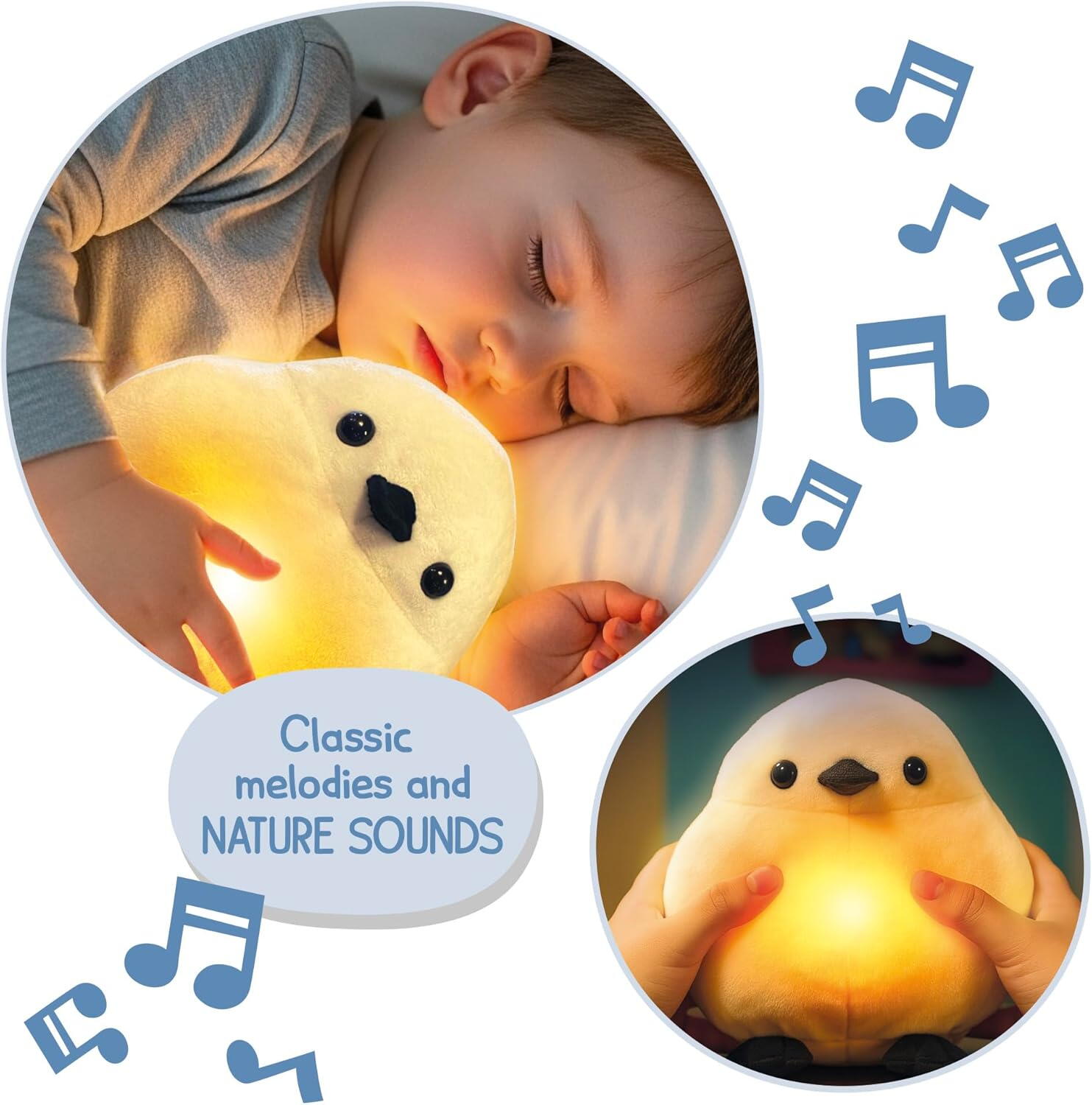 - Jucaria emite melodii clasice si sunete din natura care creeaza o atmosfera relaxanta in camera si ajuta la momentele de calm inainte de somn.