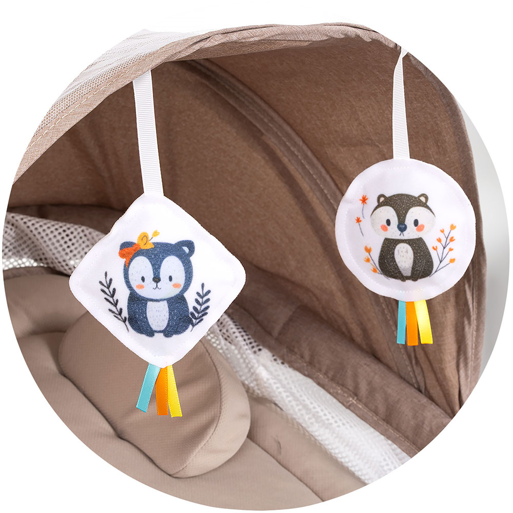 • Copertina cu jucarii de plus va capta atentia copilului