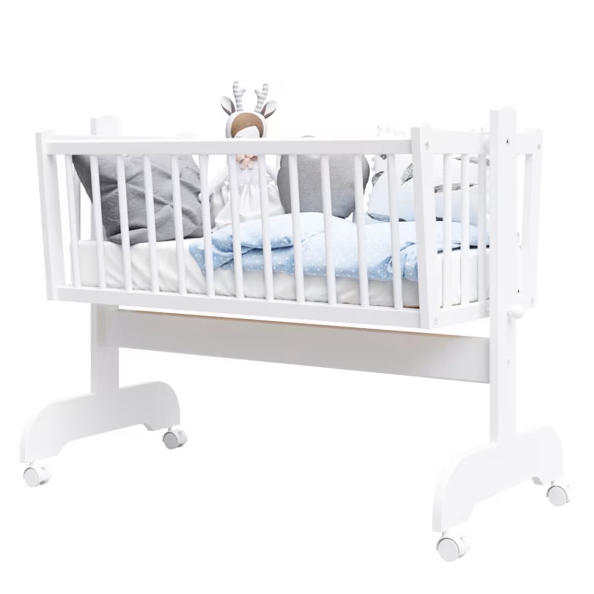 Leaganul CRISTINE este alegerea ideala pentru primele luni din viata bebelusului dumneavoastra, oferind un spatiu confortabil, sigur si linistitor. Creat cu atentie la detalii, acest leagan imbina eleganta lemnului masiv de fag cu functionalitatea moderna, transformand fiecare moment de odihna intr-o experienta calma si relaxanta. Confort, Functionalitate si Mobilitate Functie de Balansare Integrata: Mecanismul de leganare usoara ajuta la calmarea bebelusului si la inducerea somnului. Functia poate fi blocata rapid prin sistemul lateral, oferind stabilitate deplina atunci cand este necesar. Mobilitate Maxima: Cele patru roti rezistente permit mutarea usoara a leaganului in orice incapere. Fiecare roata este prevazuta cu frana individuala pentru un plus de siguranta. Design Compact si Elegant: Ofera bebelusului un spatiu sigur si placut, mentinand senzatia de confort si contactul vizual cu parintii. Accesorii Incluse Leaganul este prevazut cu suport metalic pentru baldachin , oferind posibilitatea de a adauga ulterior baldachinul preferat, (Produsul nu include baldachinul textil ) Siguranta si Calitate Premium Material: Fabricat integral din lemn masiv de fag , cunoscut pentru durabilitate si stabilitate. Finisaje Non-Toxice: Acoperit cu vopsele si lacuri sigure pentru copii, conforme cu normele europene. Intretinere Facila: Se curata simplu cu o carpa umeda si apa calda. Specificatii Tehnice Caracteristica Detaliu Material cadru Lemn masiv de fag Culoare Alb (Weiss) Dimensiune la interior 91 x 41 x 35,5 cm (L x l x H) Dimensiune exterioara 103 x 58 x 80 cm Dimensiune exterioara cu baldachin 103 x 58 x 150 cm (include suport metalic) Suprafata de dormit ( nu include saltea ) 90 x 40 cm Roti Incluse, cu blocatori individuali Greutate produs 20 kg Garantie 2 ani Tara de productie Romania