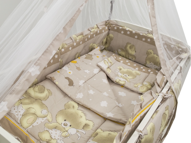 Aceasta este recomandata pentru patuturile cu dimensiunea de 140 x 70 cm si este prevazuta cu doua o aparatoare laterala, o plapumioara, o pernita si un cearsaf.